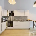 Tento apartmán o rozloze 56 m^2 se nachází 10 km od letiště Letiste Wladyslawa Reymonta - Lodz.
